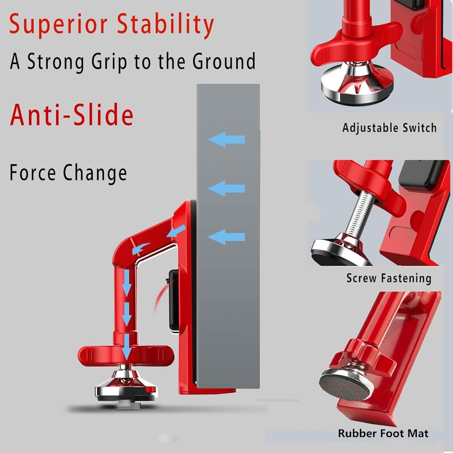 Product Description Security Alarm Door Stoppers, Portable Door Lock, Travel Anti Theft Door Blocker, Hotel Room Apartment Safety, No Drill Garage Door Brace Devices for Women, Children (red)Material: Aluminum alloyColor: redPackage weight: 365g/ 0.8 lbPackage size: 5.51x4.33x2.36inches/14x11x6cm What advantages does our alarm for doors when opening have?Protect safety and anti theftPortable to carry when travelEasy to pass through security check when board on planesSuperior resistantInstallation and disassembly in secondsNo drill and harmless installationInstalltion Requirments:The door gap should be 5-35mmFits to tiles, wooden floors,marble,cemet floorsMost of hotel doors & doors inside the house can be used(the doors open inward)Situations Not Applicable:The buttom of doors are hollow(concave) or raisedSecurity,iron,aluminium and glass doorNo door gapUneven door surface or floor.